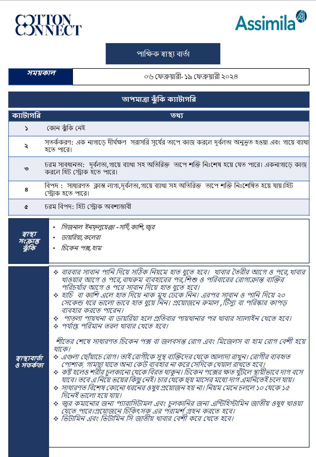 Figure 3: Health Bulletin / advisory product example for Health Bulletin 06-19 february, 2024 in Bangla.
