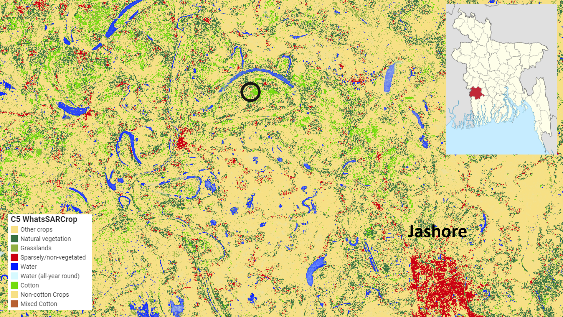 | Cotton distribution map | Bangladesh; 10 m | Annual (prototype demonstrated for 2023) | Maps for analytics and planning; supports targeting and traceability |